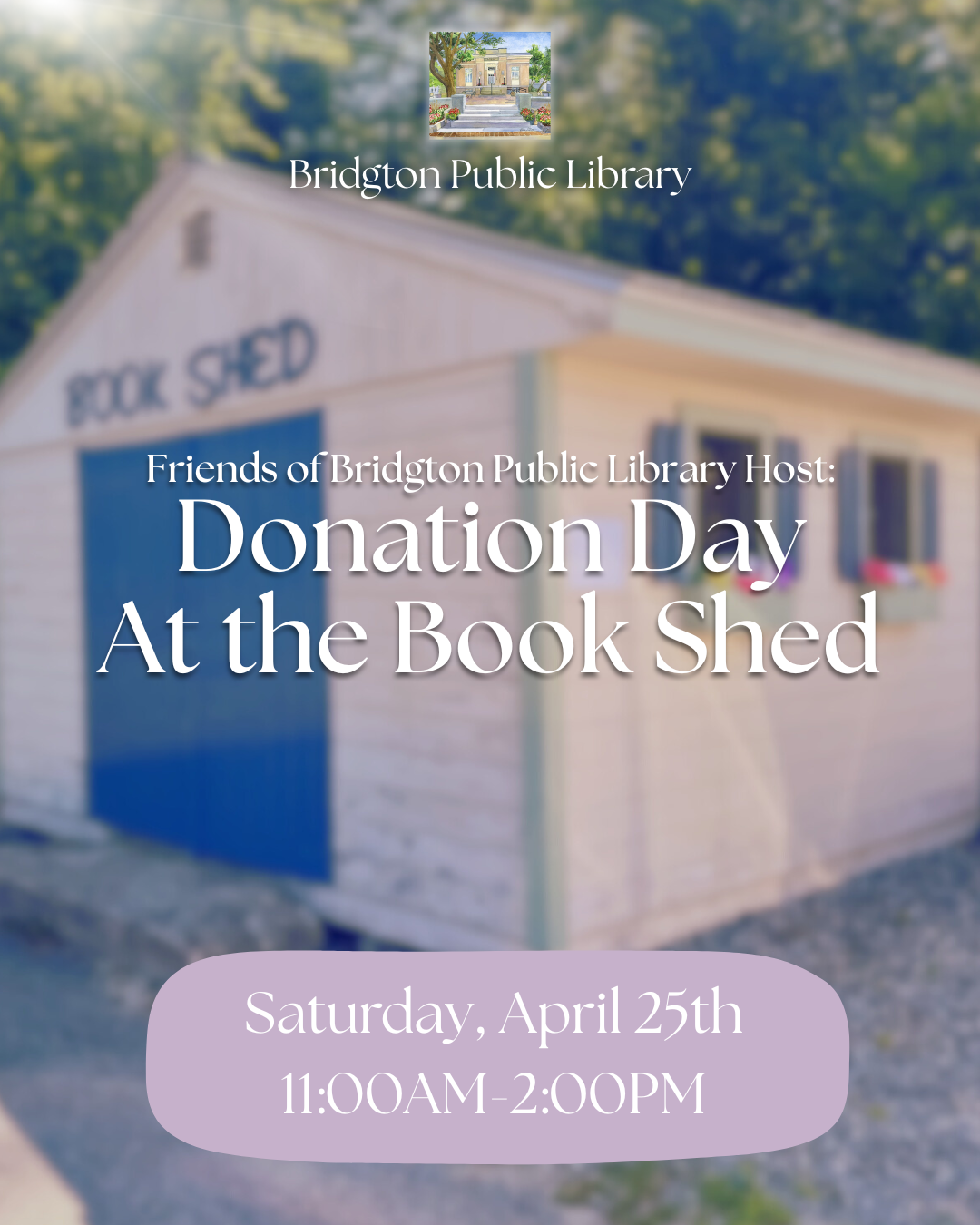 Join us at Bridgton Public Library for a special Donation Day at the Book Shed on April 25th from 11AM to 2PM—a wonderful opportunity to share your love of reading while giving back to your community.