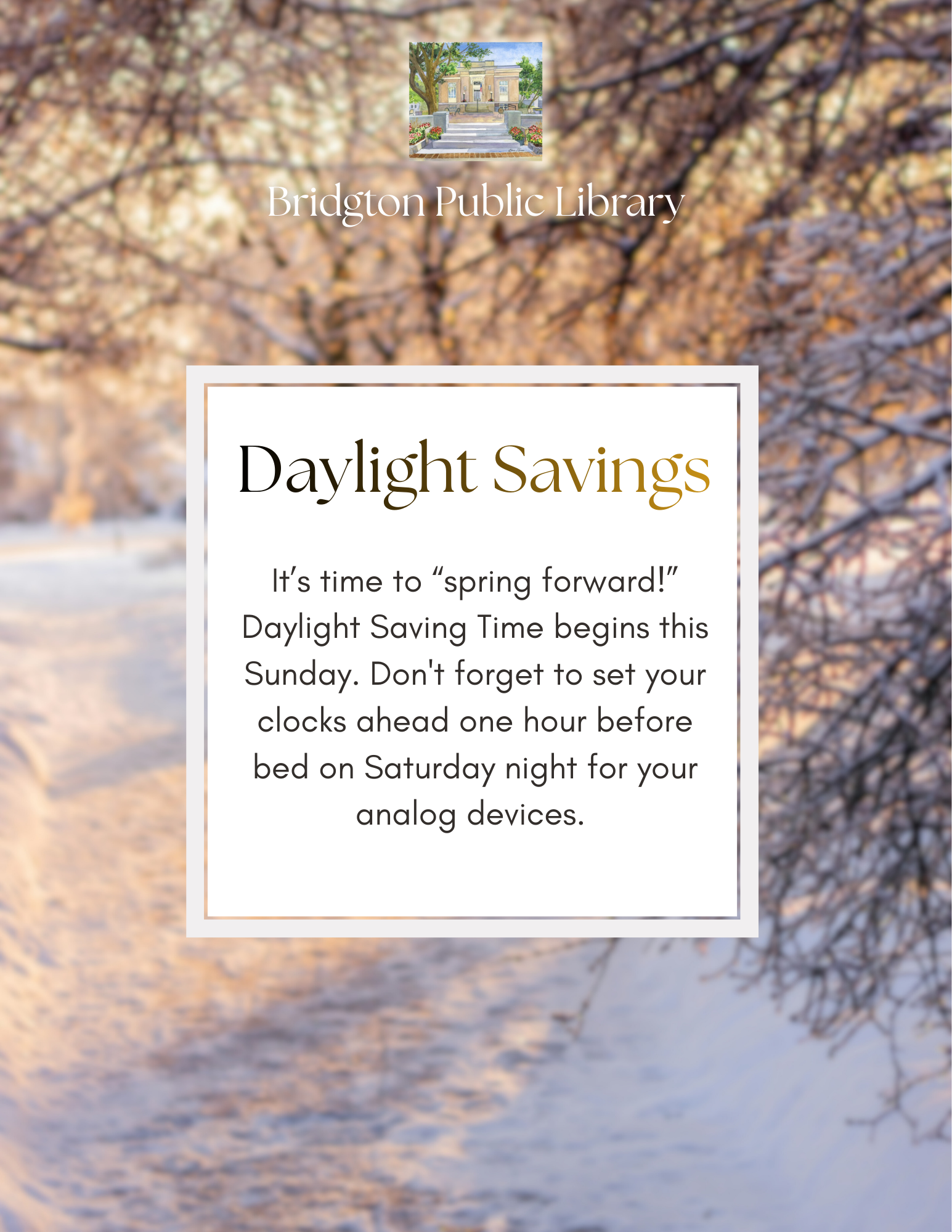 It’s time to “spring forward!” Daylight Saving Time begins this Sunday, so remember the time will be changing for most devices, or don’t forget to set your clocks ahead one hour before bed on Saturday night for your analog devices.
